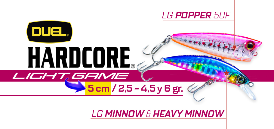 - Minnows (hundidos o flotantes): DUEL Hardcore LG Minnow.