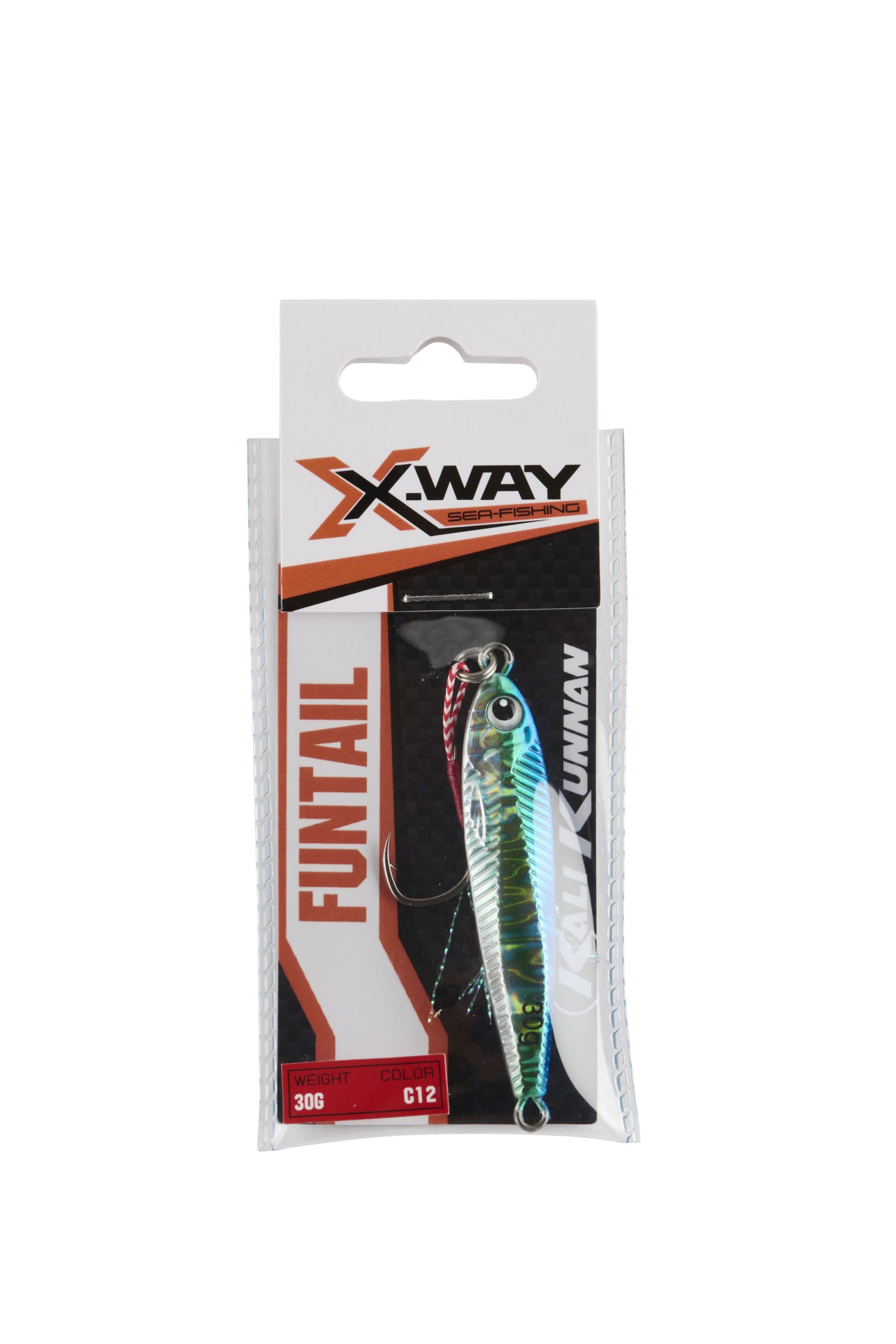 Los jigs Funtail destacan por su cuerpo alargado y estilizado, que facilita lances largos y precisos, además de una caída rápida y natural que imita a un pez en apuros. Incorporan una cucharilla junto al anzuelo, que genera destellos y vibraciones adicionales, aumentando el poder de atracción incluso en aguas turbias o con poca luz. Su acción combina un movimiento errático y brillante en recogida con un efecto parpadeante durante la caída, lo que provoca ataques tanto en vertical como a Jig Casting.