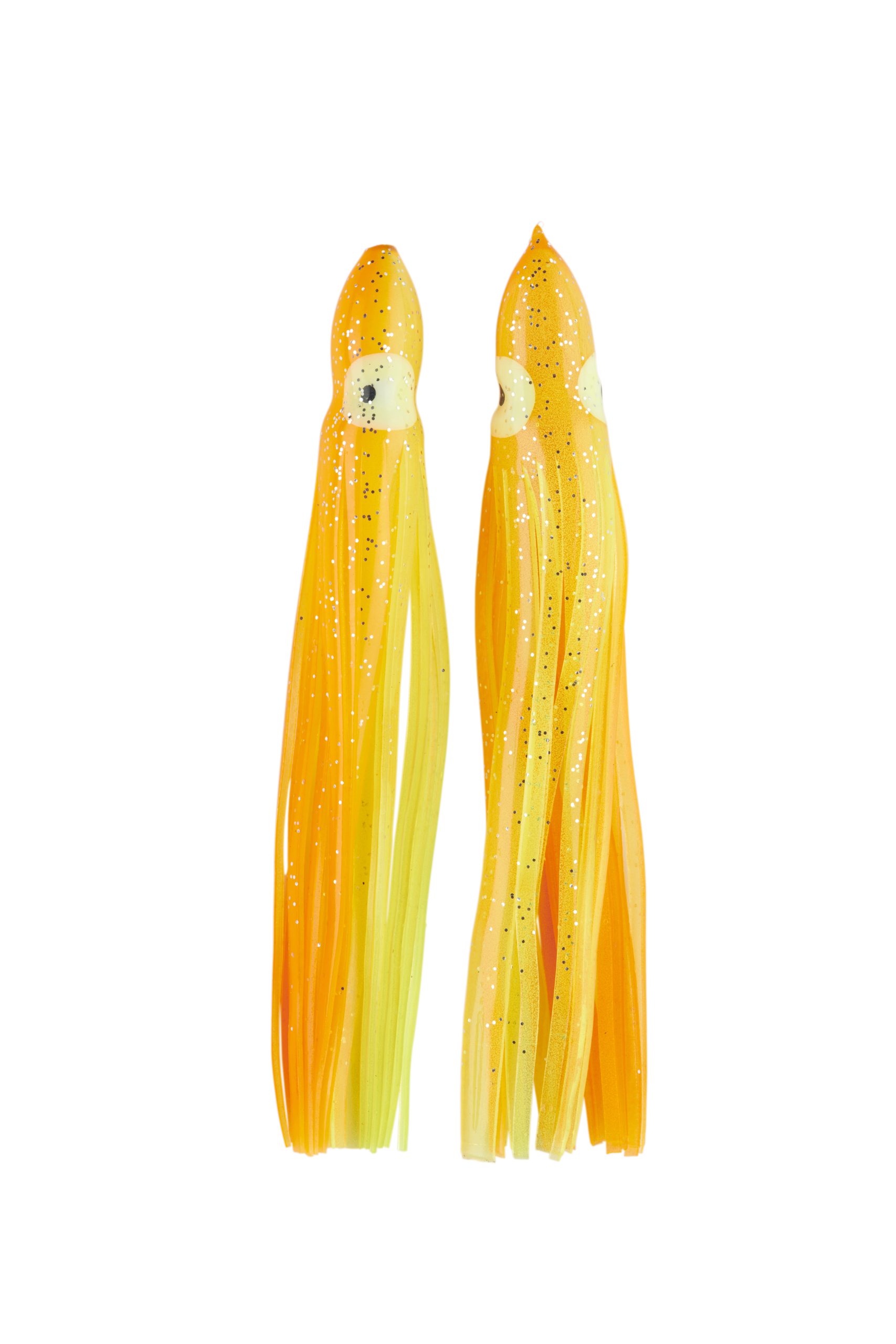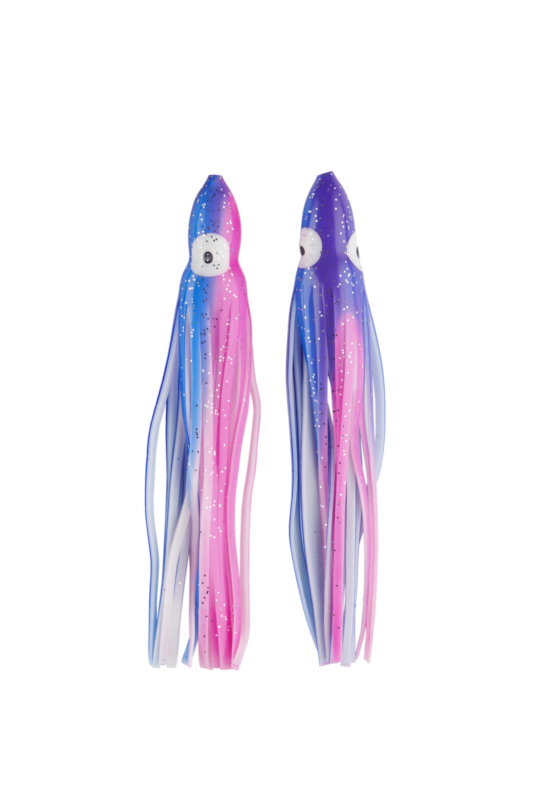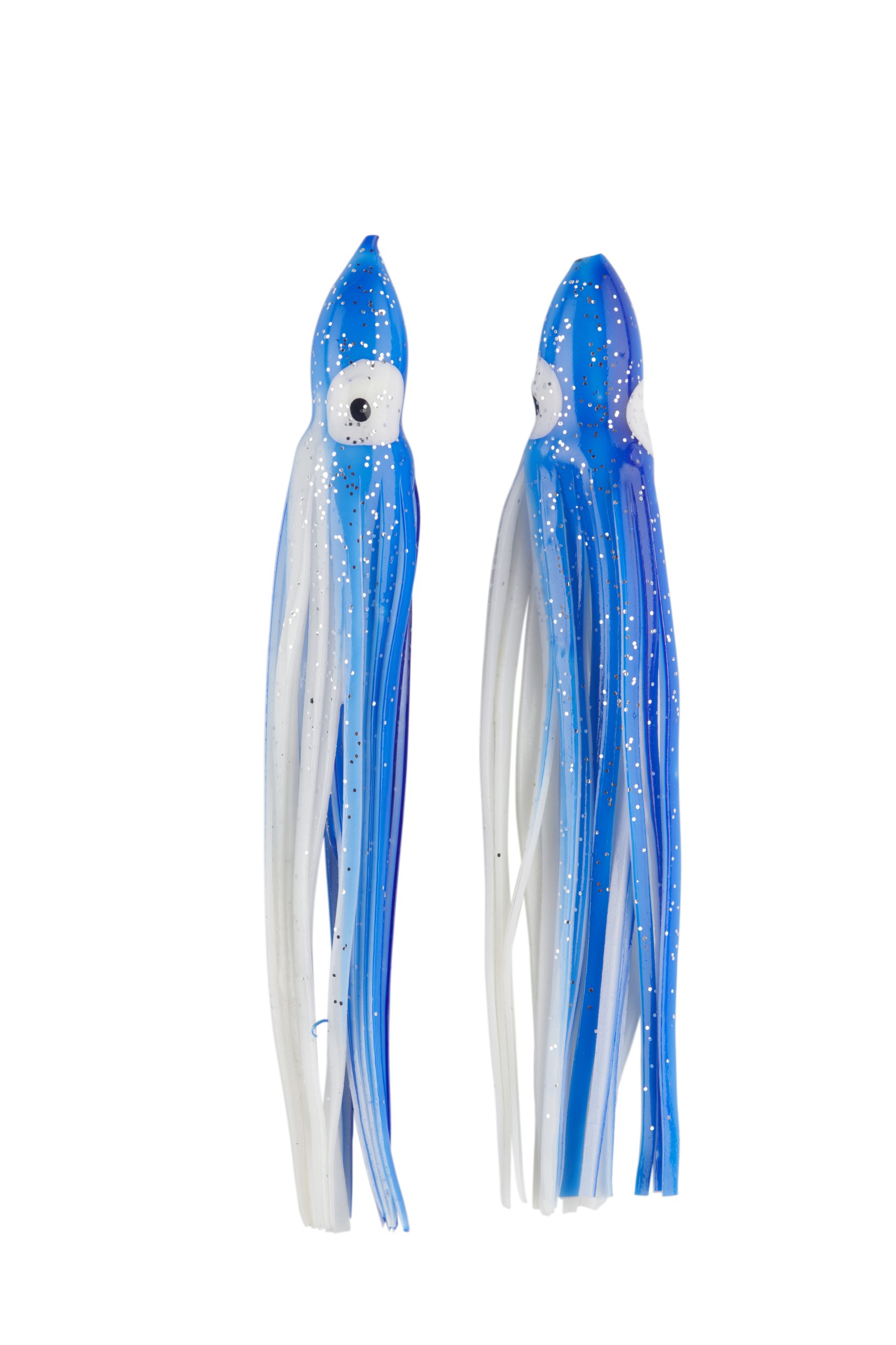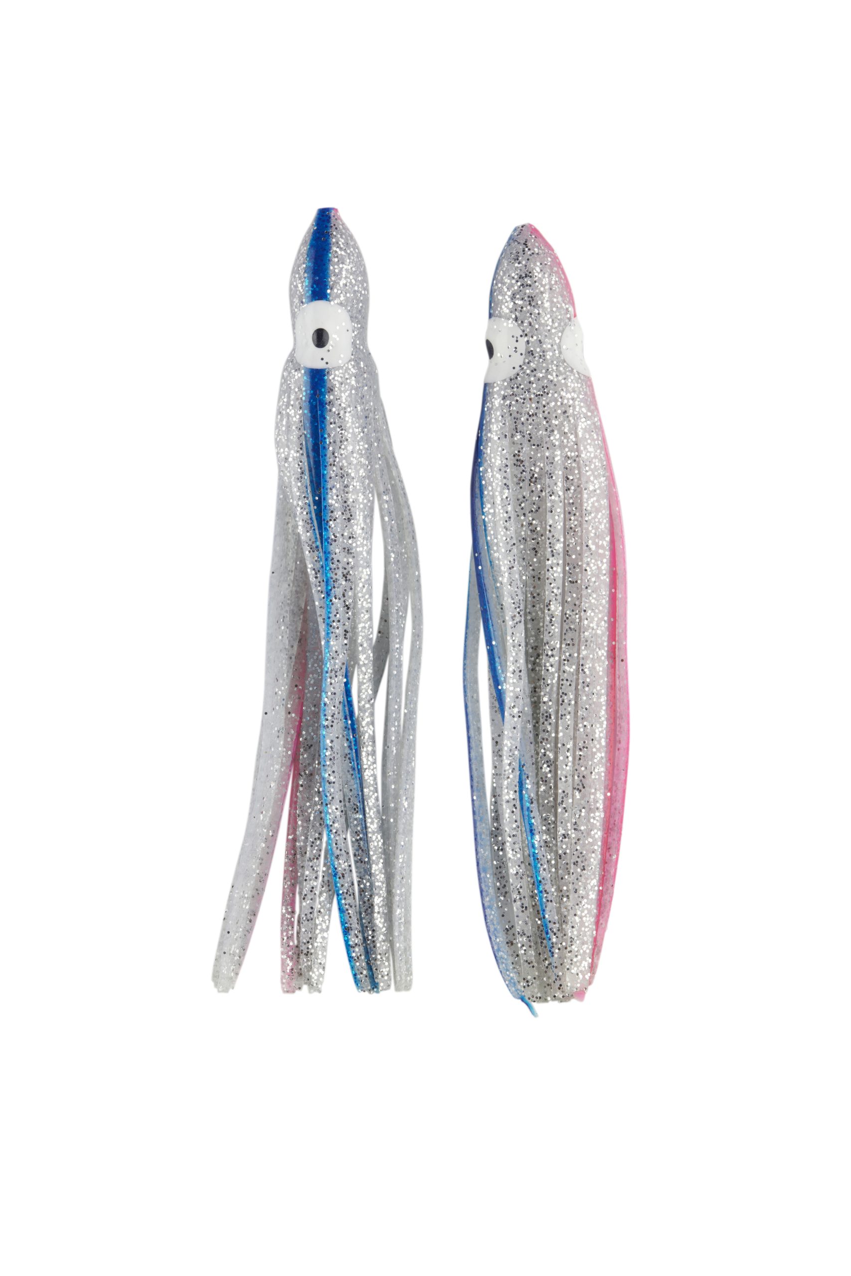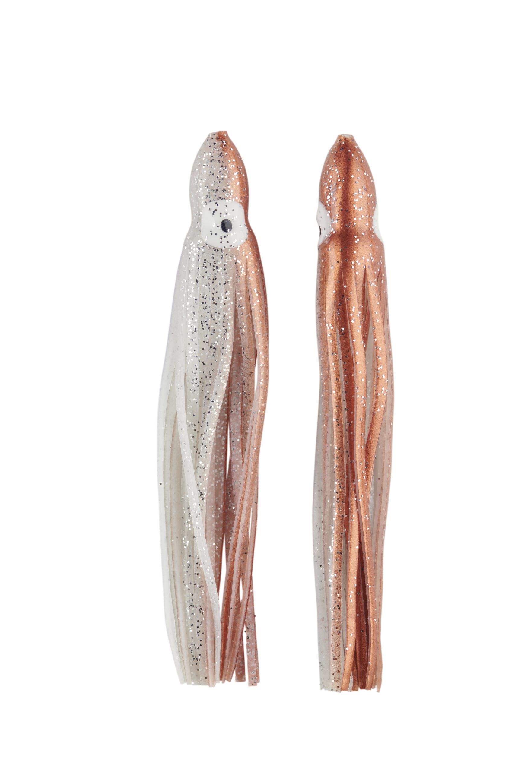 Señuelo tipo pulpito fabricado en silicona suave y resistente, ideal para montajes de curricán y pesca marítima. Su diseño bicolor rojo/blanco con destellos plateados imita a la perfección el movimiento de un calamar, atrayendo peces depredadores como atunes, dorados y jureles.