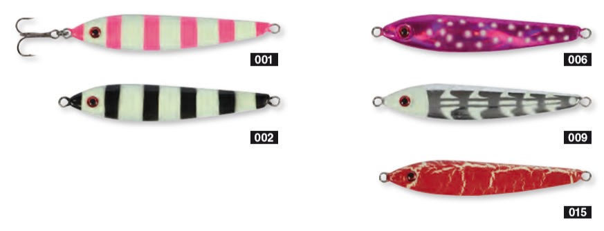 Jig nervioso de dos caras, una de ellas cóncava que provoca un movimiento irregular y atrayente. Apto para Jigging y Spinning. Buen vuelo. Ojo de cristal.
