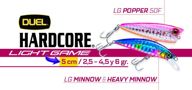 Todos estos modelos pertenecen a la serie Light Game de Duel, pensada para Light Spinning o Rock Fishing, donde la ligereza y el realismo marcan la diferencia.